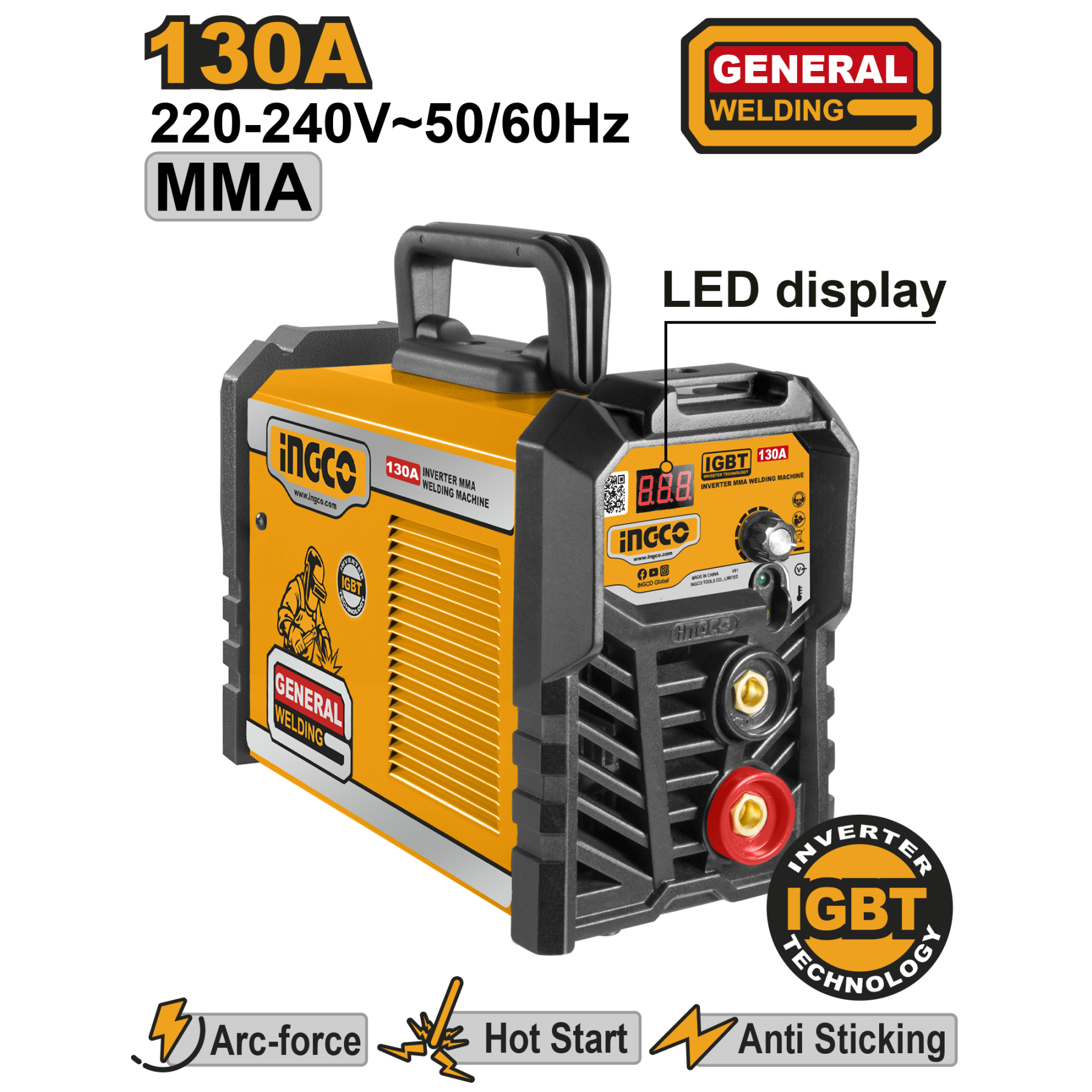 INGCO Аппарат сварочный инверторный MMA 160А IGBT/ Ø электрода 1,6-4мм/ LCD дисплей