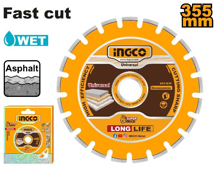 INGCO Диск алмазный сегментный для резки асфальта и бетона 355х22.4 мм