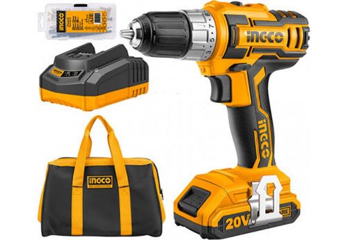 INGCO Дрель-шуруповерт аккумуляторная безударная Li-Ion INDUSTRIAL 20W 2Ач 2шт /45 Нм/15+1