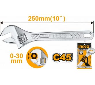 INGCO Ключ разводной 250 мм/ Регулируемый размер зева: 0-30 мм