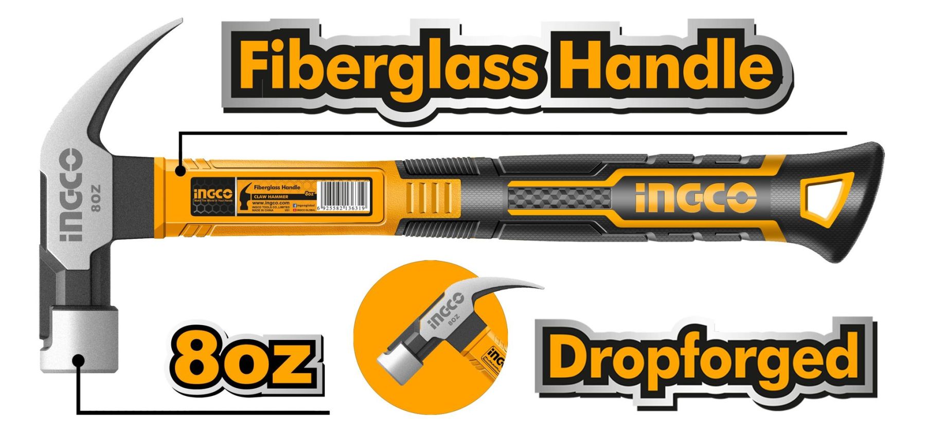 INGCO Молоток-гвоздодёр INDUSTRIAL 220гр./08oz