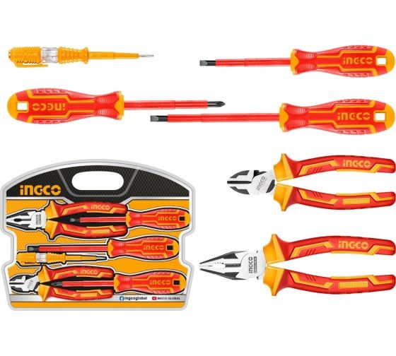 Набор диэлектрического инструмента INGCO INDUSTRIAL 6 шт. HKIST3061 пригодится для выполнения работ под напряжением до 1000 В.