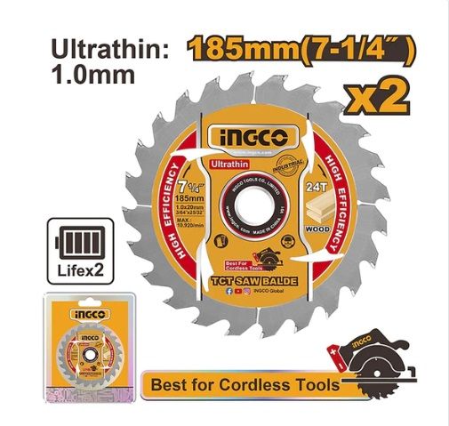 INGCO Набор дисков ультратонких пильных по дереву INDUSTRIAL 2 шт. 185х20 мм 24Т