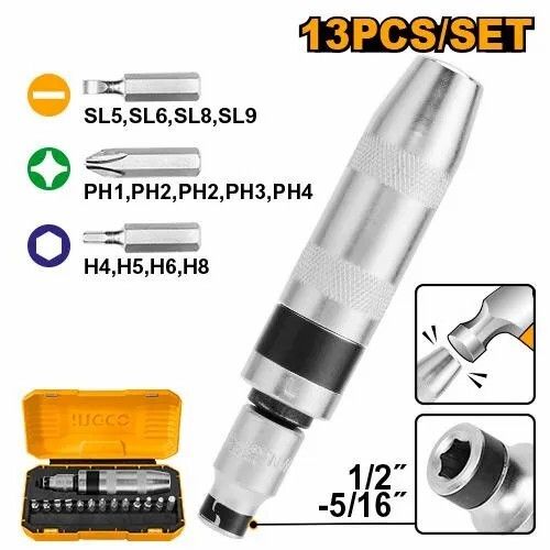 INGCO Отвертка ударная с набором бит 13 шт. INDUSTRIAL