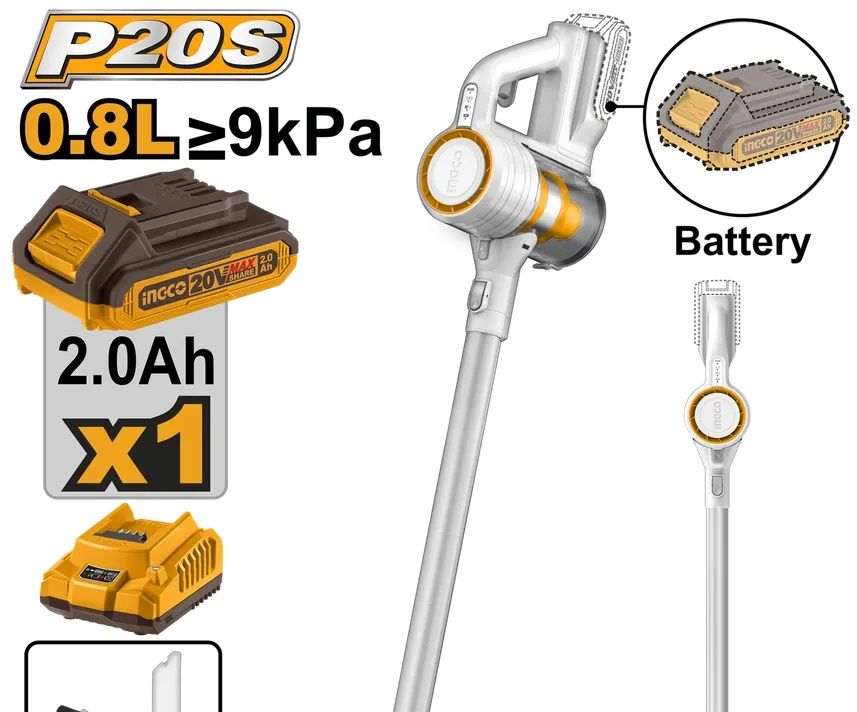 INGCO Пылесос аккумуляторный Li-Ion 20W 2Ач 1 шт