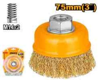 Щетка чашечная INGCO WB10751 используется для работы с УШМ. Служит для зачистки поверхностей покрытых лаком, краской, подходит для устранения ржавчины на металлических изделиях.