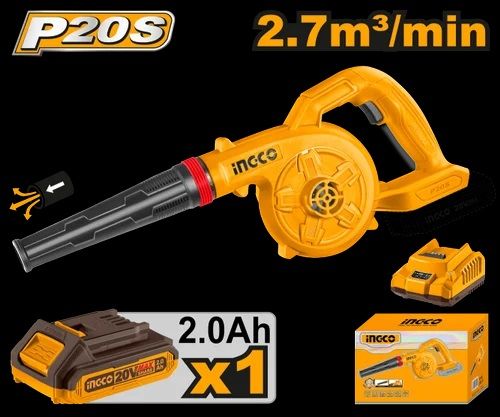INGCO Воздуходувка аккумуляторная Li-Ion 20W 1x2 Ач/ Макс. объем воздуха: 2,7 м³/мин.