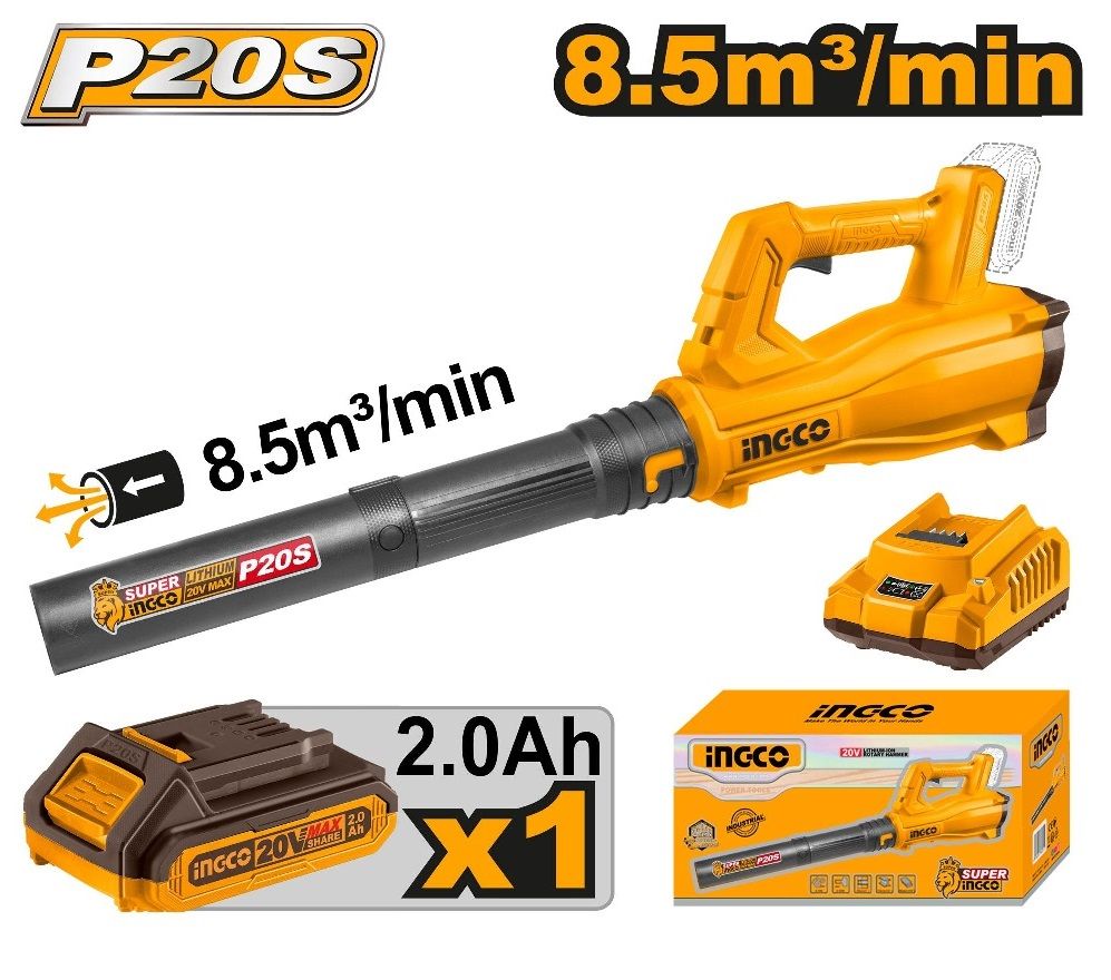 INGCO Воздуходувка аккумуляторная Li-Ion 20W/ Макс. объем воздуха: 8,5 м³/мин