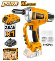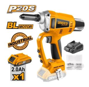 INGCO Заклепочник аккумуляторный INDUSTRIAL Li-Ion 20W Бесщеточный двигатель/ 1х2,0 Ач