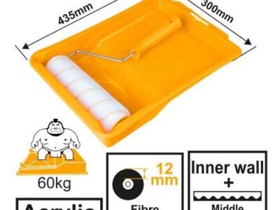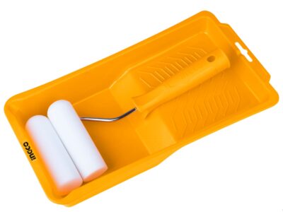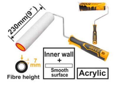 Малярный набор INGCO HKTCB83230083 подойдет для отделки как внутренних так и наружных стен. В комплекте держатель для роликов 230 мм, 1 ролик 230 мм с ворсом 7 мм, 3 ролика 230 мм с ворсом 12 мм, 1 ролик 230 мм с ворсом 18 мм, ванночка размерами 435х300×75 мм, а также флейцевая кисть шириной 25 мм. Материал шубок – полиакрил. Ножки на ванночке обеспечивают наклон для экономного расхода краски и удобства использования.