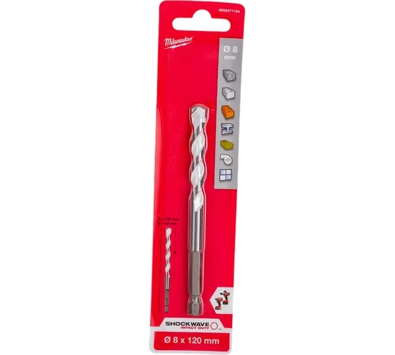 Сверло по мультиматериалам (8×120 мм; хвостовик HEX) Milwaukee 4932471104 рассчитано для работы как с винтовертами (с ударом), так и с инструментами, оснащенным трехкулачковыми патронами, такие как шуруповерты и ударные дрели.